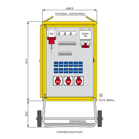 Les armoires mobiles sont utilisées partout où une alimentation électrique rapide, à court terme ou non installable de façon permanente est nécessaire. Principalement lors de festivals ou foires... où différents systèmes doivent être alimentés en énergie.